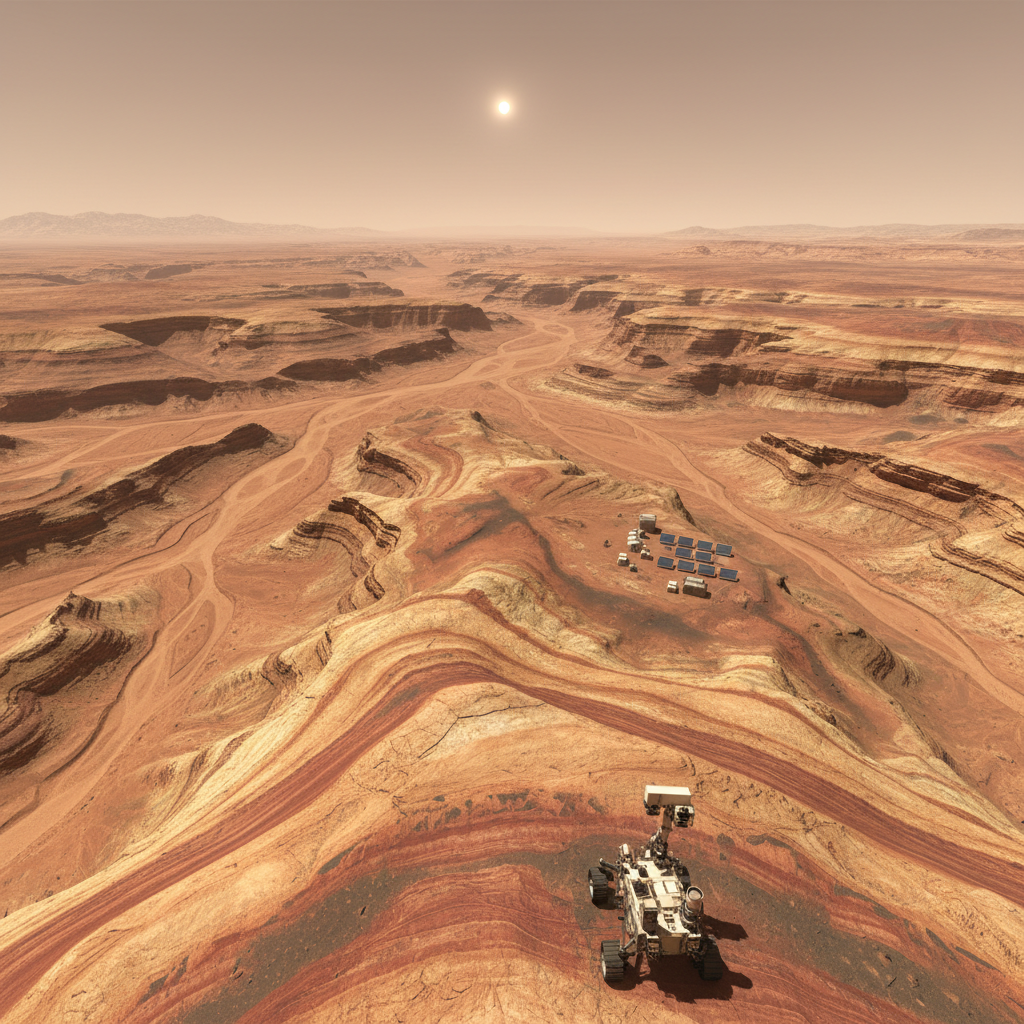 火星古河流域系统 大型河流侵蚀地貌 红色星球表面干涸河床 沉积物层理结构 远古水流痕迹 寻找地外生命迹象的科研焦点